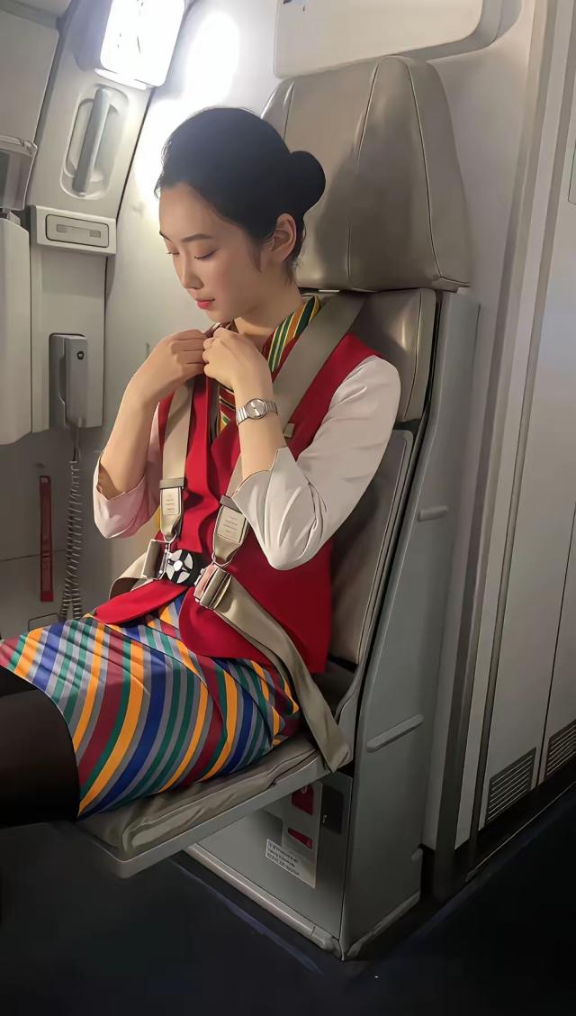 第一次坐飞机,看到空姐就感觉像是天仙一样,这个空姐看起来年龄不大,很容易害羞。